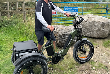 The perfect way to try out an eTrike. It offers an easy ride through lovely countryside on minor roads, tracks and cycle lanes. Our tour starts at the Winster Hub where you will collect your picnic for the journey which is easily transported in the eTrike rear luggage area. This tour allows plenty of time to choose your picnic spot whilst having fun on your eTrike The route then takes you out to Minninglow where a number of picnic tables could be utilised just beyond the car park. The High Peak Trail is then followed for a couple of miles before exiting down farming lanes and out to the furthest point of your journey. Country lanes are then taken with many opportunities for stops and photographs before the High Peak Trail is crossed and the route takes you below the neolothic tomb and barrows of Minninglow Hill. A few miles further and subject to the time of year you could choose to eat your picnic at the butterfly quarry. The route then passes though Aldwark where you may be lucky enough to find the local brewery open or just follow your route back to the Miners Standard for a well deserved beer there! This is a very easy tour to navigate so would not normally be guided as you would expect to spend a fair bit of time off your bike "picnicking" however if you want someone to come along for the cycling tips we can still provide an instructor option Difficulty - Easy Blue Tour Surface - Minor roads, cycle trails & farm lanes Time allocated - 4 hours Distance - 13 miles Refreshment Stop Options - Your Picnic & Winster Hub Tour Reference - 49 Price Includes Packed Lunch - https://www.peakepedals.net/product-page/tour-packed-lunch Self Guided Only